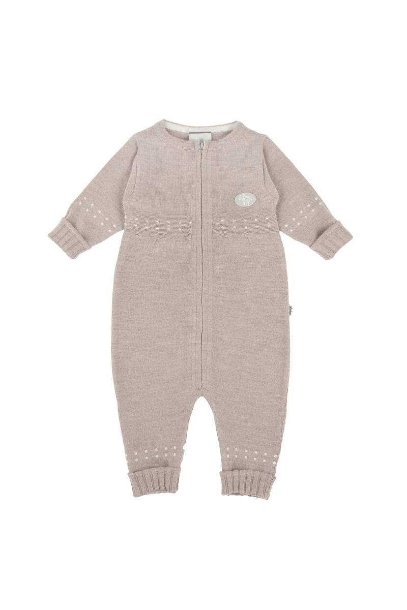 Lillelam ulldress lukkes med en sentrert glidelås og kommer med ribbestrikket brettekanter rundt håndledd og ankler. Ulldressen vil kunne vokse litt med baby. Passformen er deilig og løs fra midjen og ned, med en svak innstrammet i midjen. Utrolig deilig passform mtp krabbing og soving.