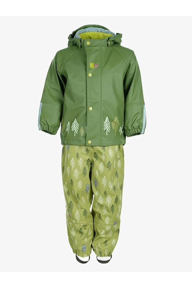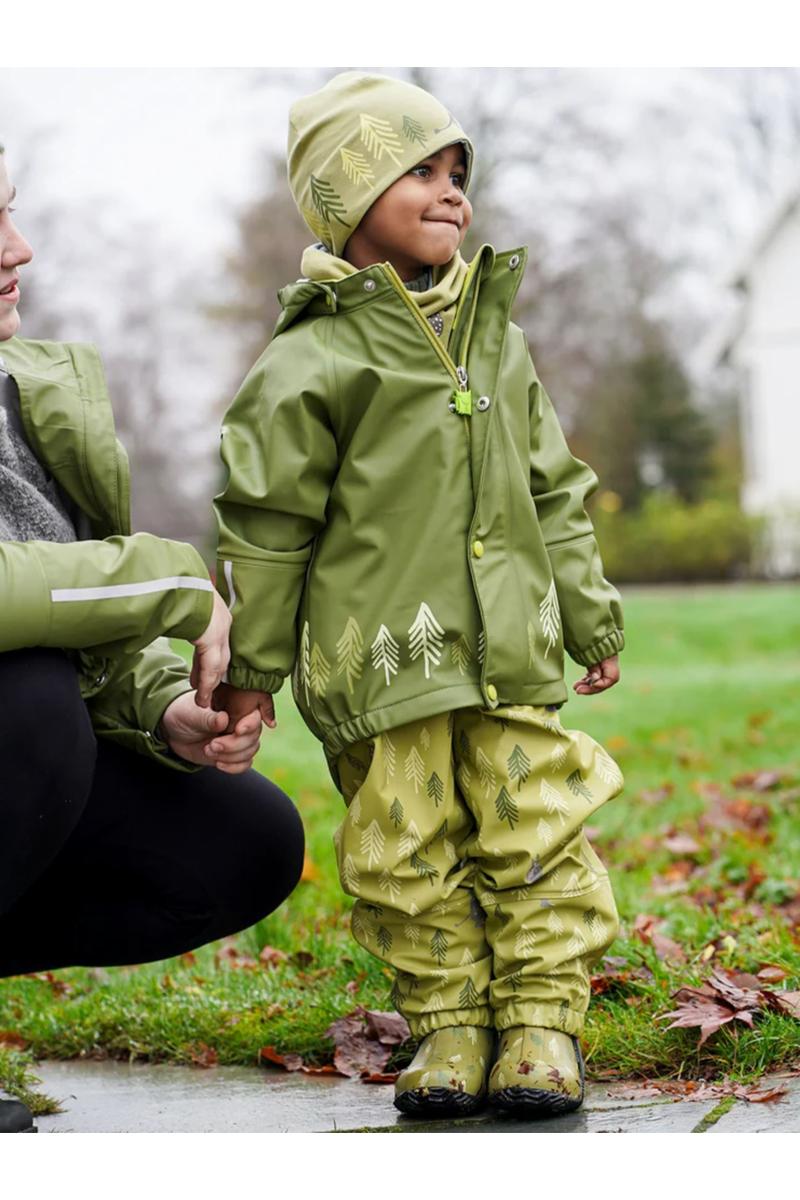 La barna omfavne regnværet med dette regnsettet – et slitesterkt og vanntett sett som tåler alt fra plask i sølepytter til lange dager med lek i øsende regn. Jakken og buksen er laget i en førsteklasses PU-kvalitet med børstet innside for ekstra komfort. En myk fleecekrage luner nakken, mens smarte vannstoppere i ermer og bein holder små kropper tørre. Ekstra detaljer som slitesterk gummistrikk under føttene, sveisa sømmer og refleksdetaljer sørger for både funksjonalitet og sikkerhet. Med en avtagbar og regulerbar hette er barnet klart for alle typer eventyr – uansett vær!