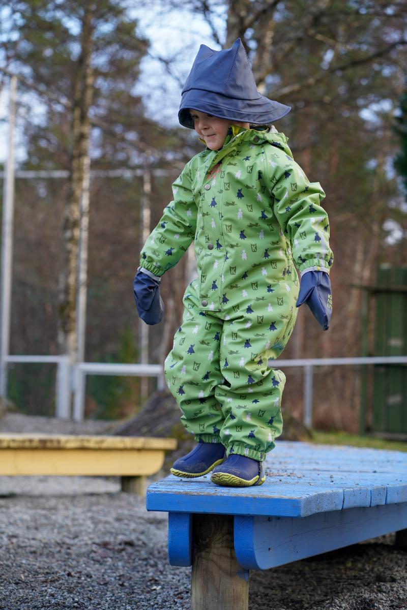 Her blir regnvêrsdagar til superhelt-trening på ekte vis: spring for fort, hopp for langt og le litt for høgt (sorry, naboar). Dressen held barnet tørt og varmt, medan fantasien tek over og reglane blir litt mjukare. Ein ekte kvardagshelt i garderoben – klar frå første plask til siste triumferande sprang heim, året rundt.