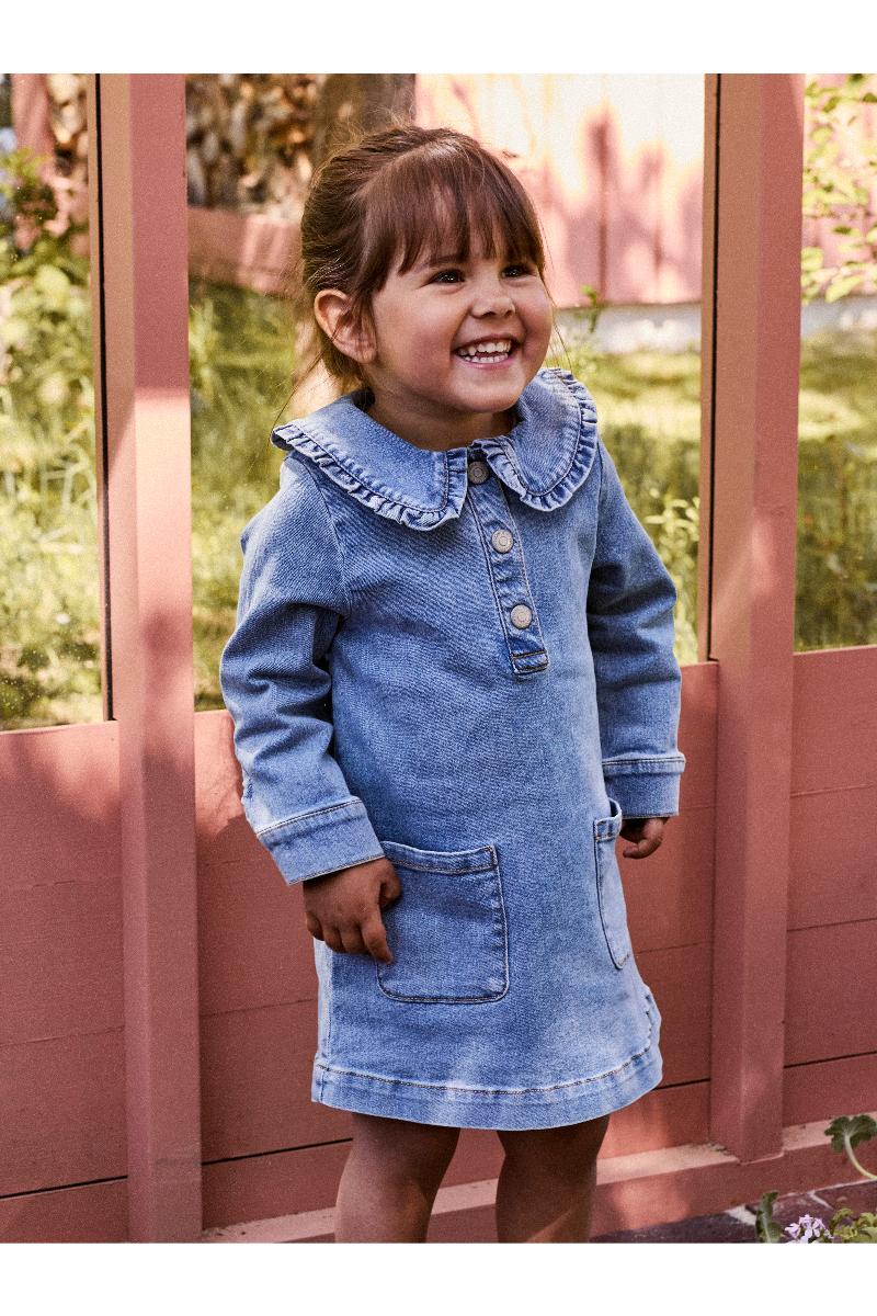 Oppdater barnets garderobe med en super søt denimkjole som passer perfekt til både hverdag og spesielle anledninger. Denim er et slitesterkt vevd materiale som gir kjolen et tidløst og unikt uttrykk.