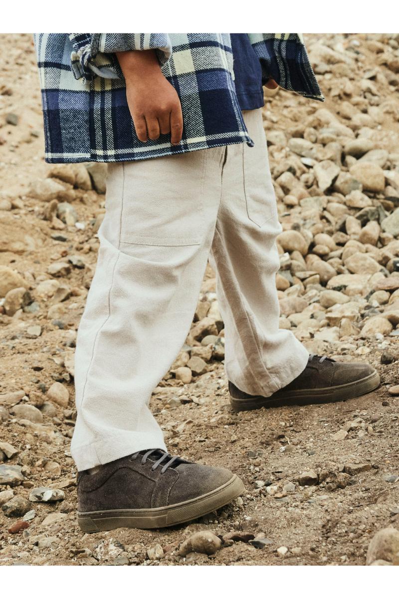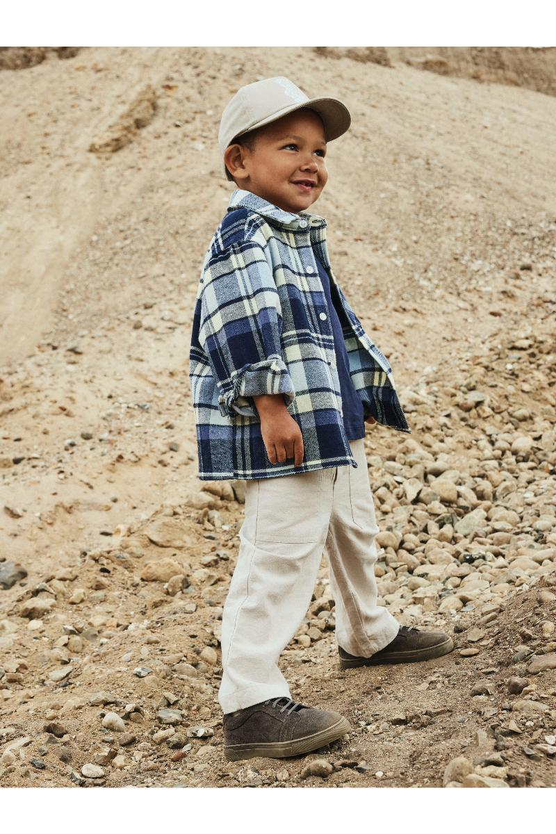 Kle barnet ditt i komfortable og trendy bukser som gir en myk og behagelig følelse hele dagen. Det vevde stoffet har et tydelig kryssmønster og en lett strukturert overflate som gir et rent og klassisk uttrykk.